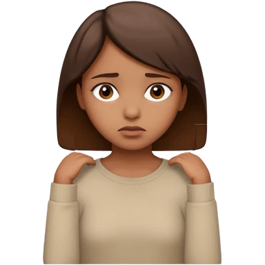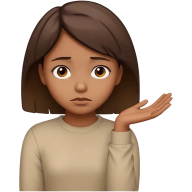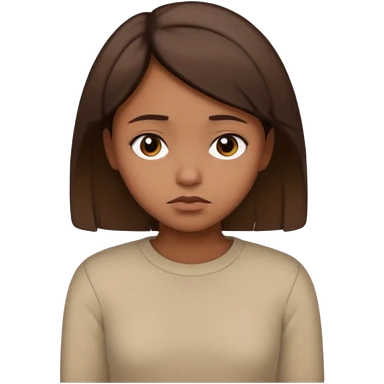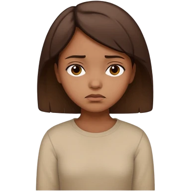 a brown girl with short brown hair wearing a beige full sleeve and looking sad emoji