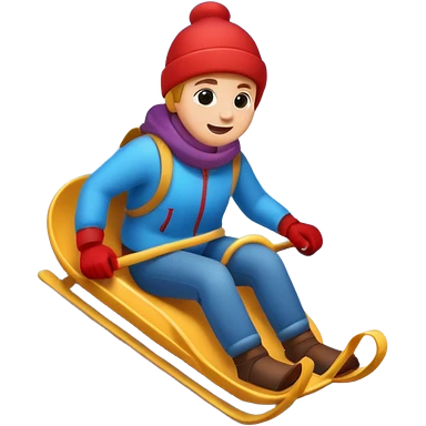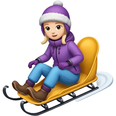 sledge surrounded with snow with boy and girl on top of it riding emoji