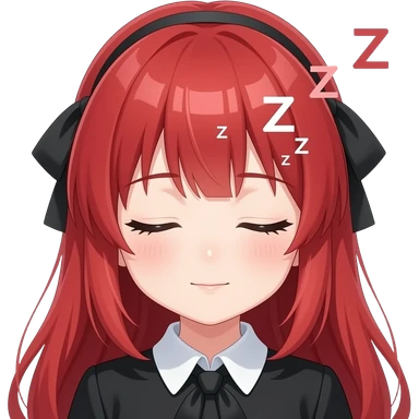 anime girl,sleep zzzs, red hair, green eyes, black blouse with white collar emoji