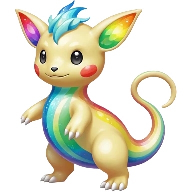 Oversaturated Rainbow-swirled Sparkly Ethereal Soft Pokémon-Fakémon-Digimon-Creature, (full body) emoji