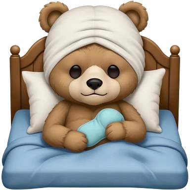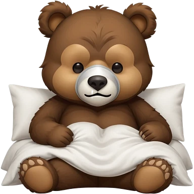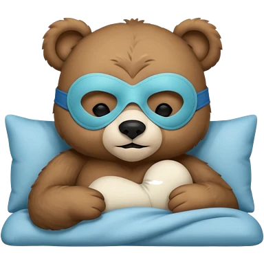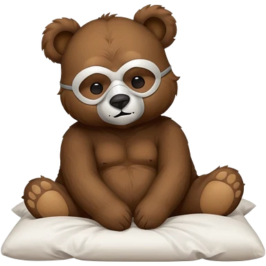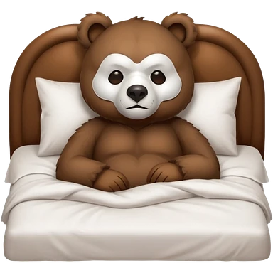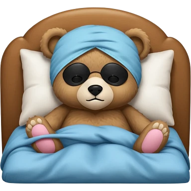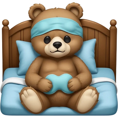 sleepy cute bear with mask sitting on comfiest bed emoji
