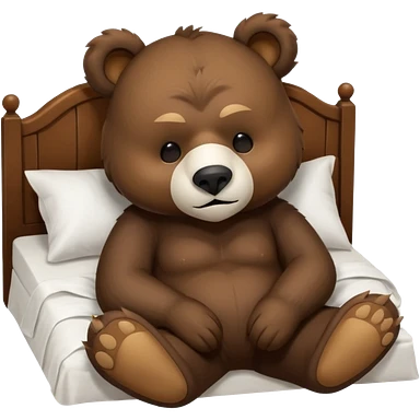 sleepy cute bear with sleeping mask sitting on comfiest bed emoji