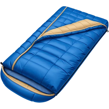 sleeping bag in blue/yellow to olive & tan (#7D7A52 / #E1C699). emoji