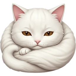 Meme-Worthy Cute Sleeping White Cat Portrait Emoji, Head peacefully tilted with a tender, contented smile and eyes gently closed in serene slumber, featuring a pristine white fur with subtle, delicate silver accents, simplified yet irresistibly adorable, highly detailed, glowing with a soft, drowsy radiance, high shine, exuding calm, heartwarming charm, styled with a gentle, soft glowing outline, capturing the essence of a sleeping white cat that seems destined to become the next viral icon of adorable repose! emoji