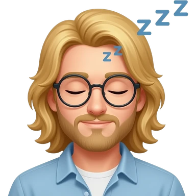 sleeping blond guy with long hair and glasses with "zzz" floating above his head emoji