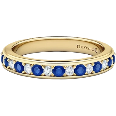 Detailed realistic sparkling Vintage Tiffany & Co. 18k Yellow Gold Vivid Blue Sapphire Half Eternity Band Ring emoji
