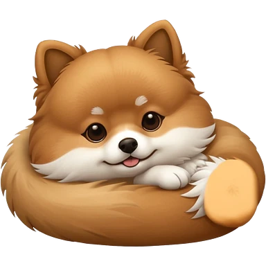 sleeping pomeranian in ping dog bed emoji | AI Emoji Generator