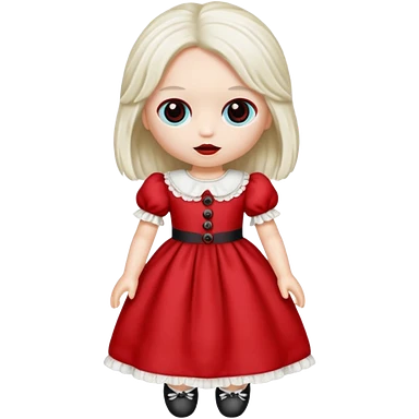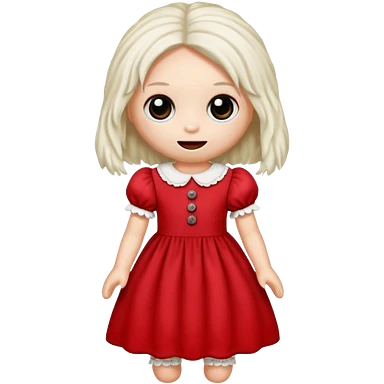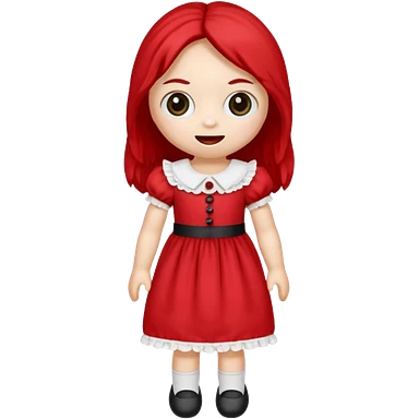 Toy ragdoll in red dress emoji