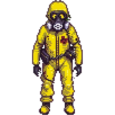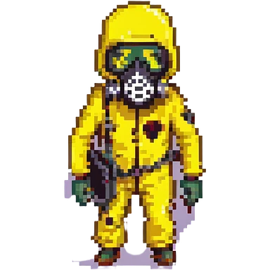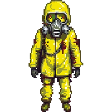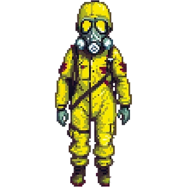 a zombie from the game DAYZ wearing a yellow hazmat suit with a black gasmask emoji
