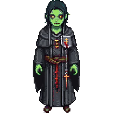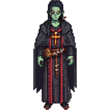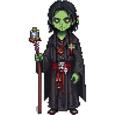 a zombie from the game DAYZ, A PRIEST WITH BLACK HAIR WEARING A BLACK ROBE emoji