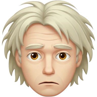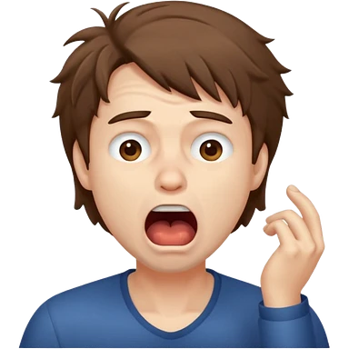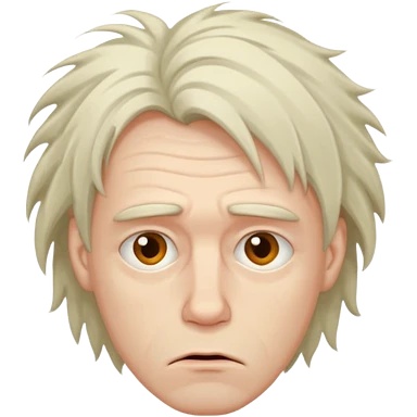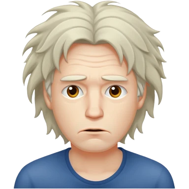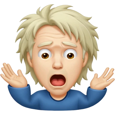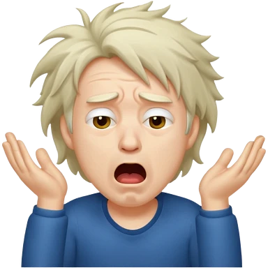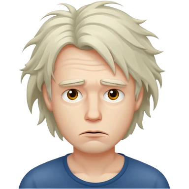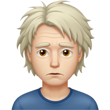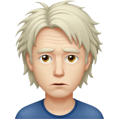 man with disheveled hair, ragged chlothing, and shaking emoji