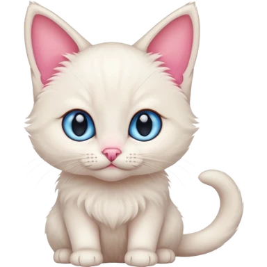 Cute chibi kitten emoji, big sparkly eyes, tiny pink nose, pastel colors, simple thick outline, smiling, clean flat shading, transparent background, no text emoji