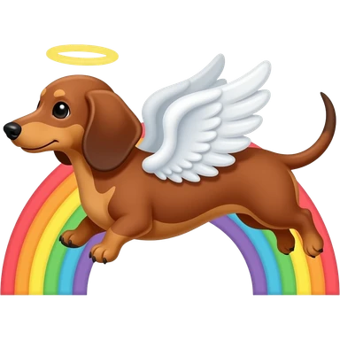 Red dachshund with angel wings flying to the rainbow bridge emoji