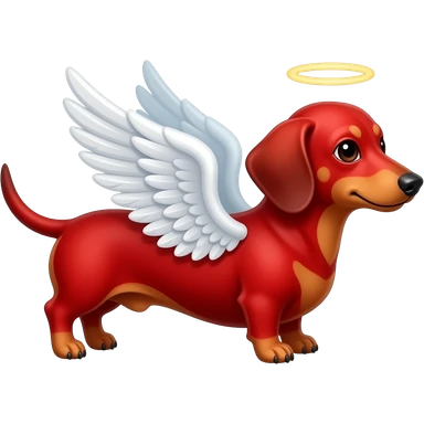 Red dachshund with angel wings flying to heaven emoji