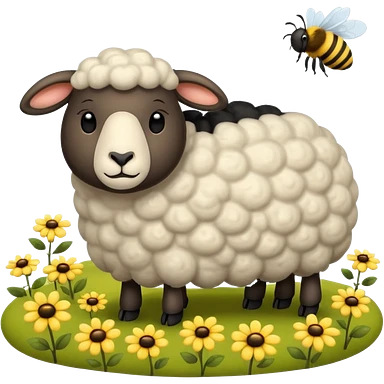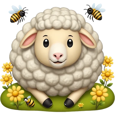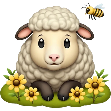 sleepy sheep in the field and a bee emoji