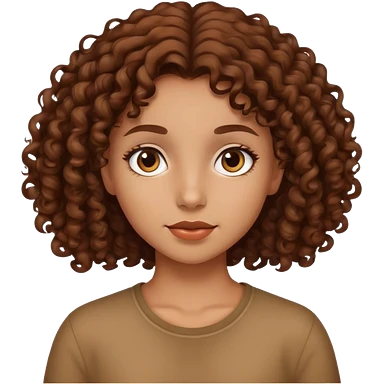 brown-skinned girl with slightly wavy hair, straight nose, heart-shaped lips, round eyes and face, soft eyebrows, long lashes, shown from the waist up emoji