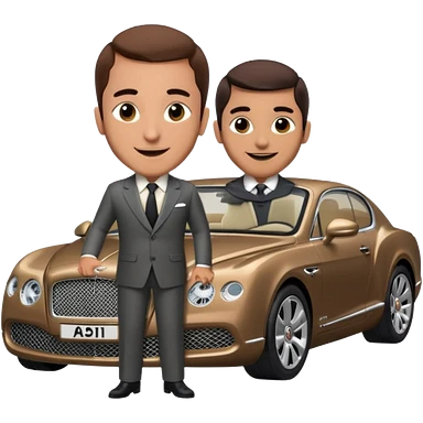 Professor Bentley Dyed black gray hair frencb beard graying indian guy in suit with a bentley car emoji