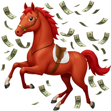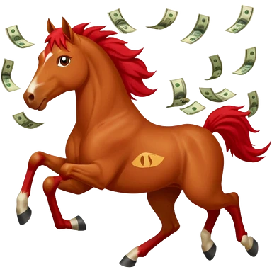 red horse agressive running money on the saddle text “ZGI” on leg emoji