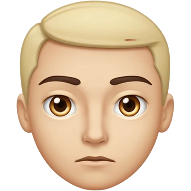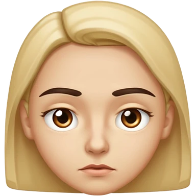 focused sharp eyes, eyebrows slightly angled inward, small straight line mouth, controlled and precise expression, subtle dissatisfaction emoji