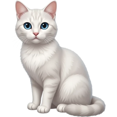 Realistic sitting slim beautiful fine aesthetic white cat with blue eyes emoji