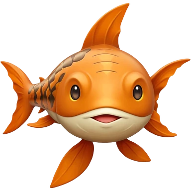Solaran Magikarp - Ground type Hardier than regular Magikarp, longer and thinner, adapted to survive in shallow desert pools and temporary rain puddles of the badlands. muddy brown-orange fish. long whiskers. pokemon art style. emoji
