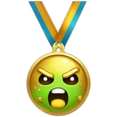 malinois dog head with star sunglasses holding a slice of Parisian flan in its mouth, the flan slice has a blue medal with a white center around it emoji