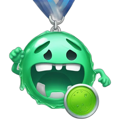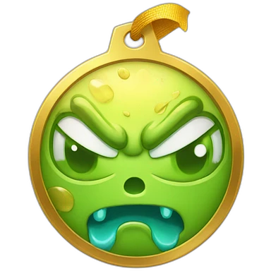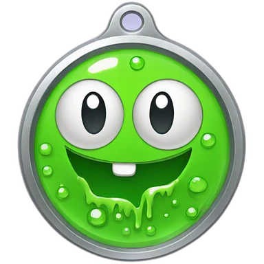 metallic bucket filled with purple slime with big eyes and a happy face emoji