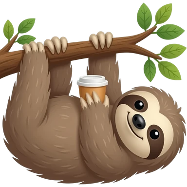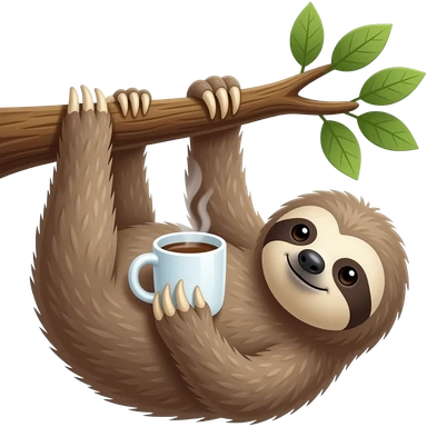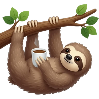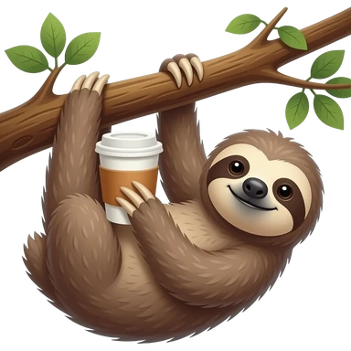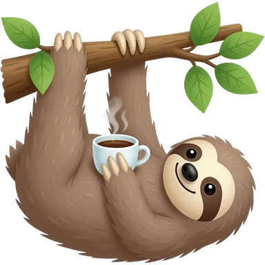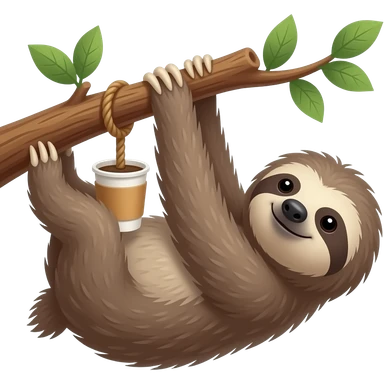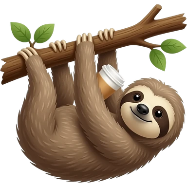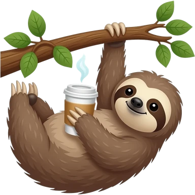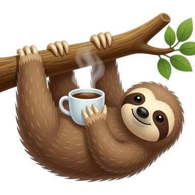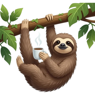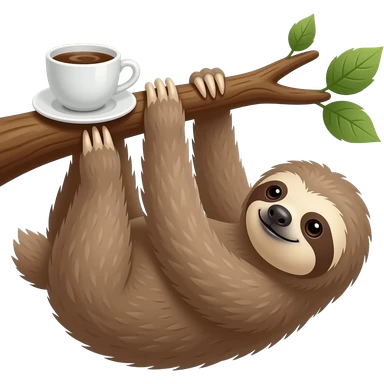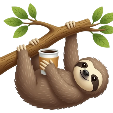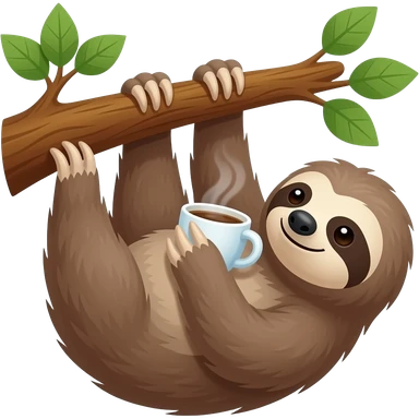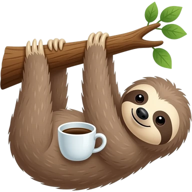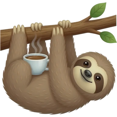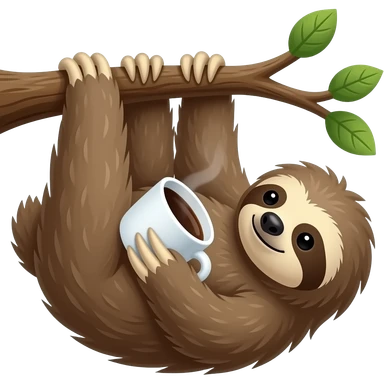 Cute sleepy Sloth with coffee mug simple clean ios emoji