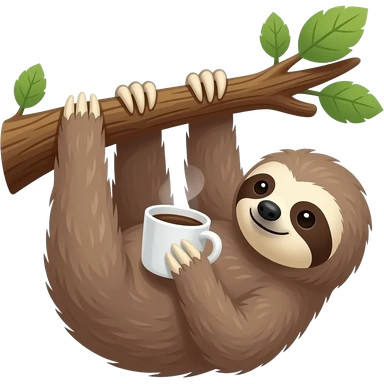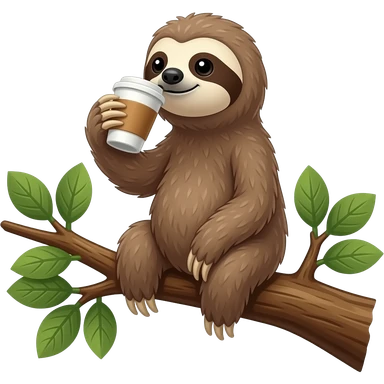 sloth on big tropical tree drink coffee hanging emoji | AI Emoji Generator