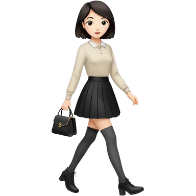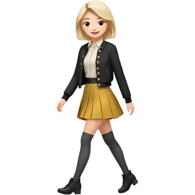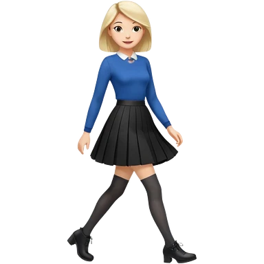 a fashionable gen Z woman, walking confidently with a skirt and stylish tights emoji