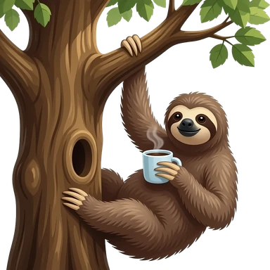 sloth tree morning coffee hanging emoji | AI Emoji Generator