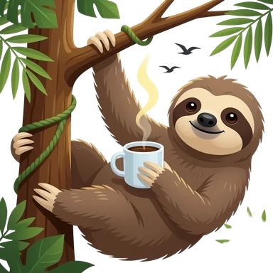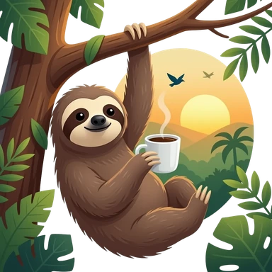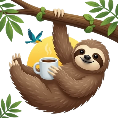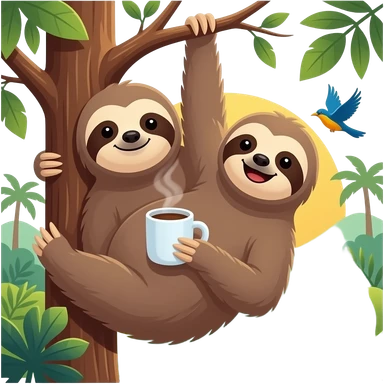 sloth tree morning coffee hanging sunrise jungle emoji | AI Emoji Generator