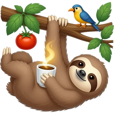 sloth tree morning coffee hanging sunrise jungle tomato bird emoji