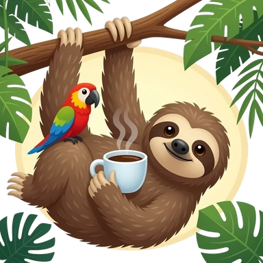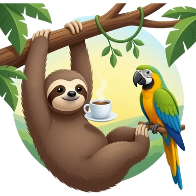 sloth tree morning coffee hanging sunrise jungle paradise parrot emoji