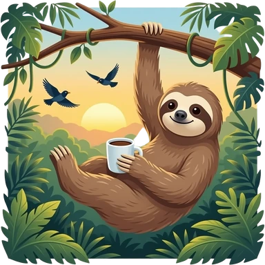 sloth tree morning coffee hanging sunrise jungle birds emoji