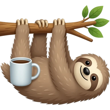 sloth morning coffee big tree branch hanging long arm long legs emoji