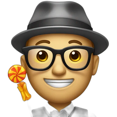 Dog with propeller hat spilling wide with giant lollipop in one hand emoji