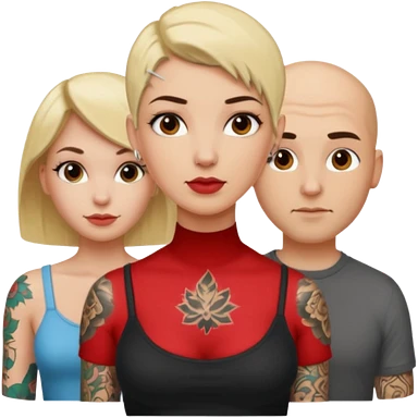 throuple blonde femaleand brunette female with bald tattooed male emoji