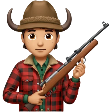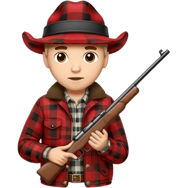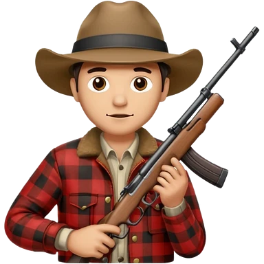 Man wearing buffalo plaid jacket and hat, with rifle emoji
