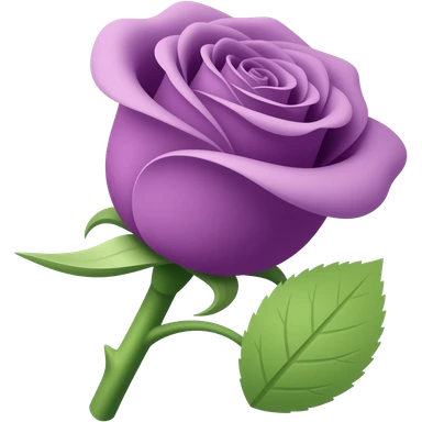 small wilting purple rose emoji with stem and leaves and thorns darker violet purple with falling petal(s) facing upright with purple grey stem emoji