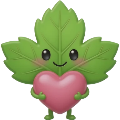 small weed leaf with a cute face holding a big huge heart that he can barely carry emoji