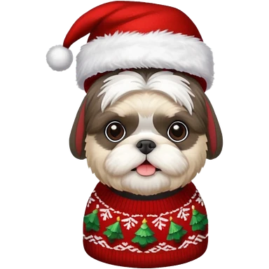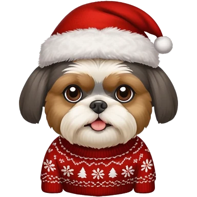 Small all OVER dark grey faced shih tzu christmas sweater hat emoji