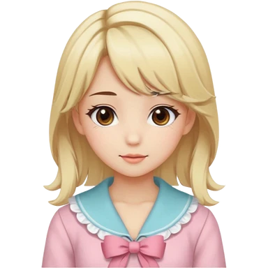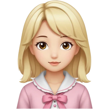 Cute anime girl with blonde hair and brown highlights and cute coquette clothes emoji