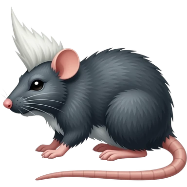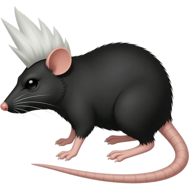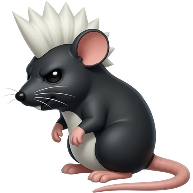 side view of a black ugly mad malicious rat with a white mohawk emoji