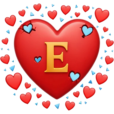 Small broken heart emojis around the letter E emoji | AI Emoji Generator