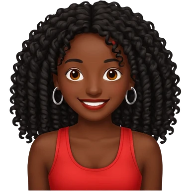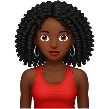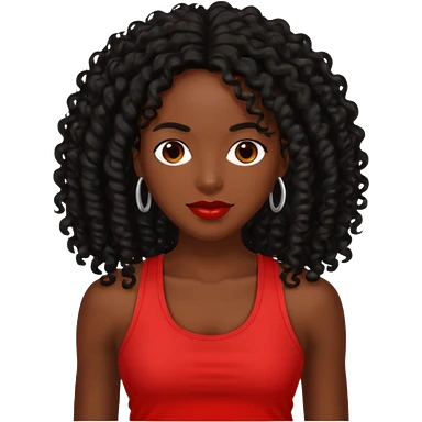 Rozonda Chilli Thomas dark skin long black curly hair, red tank top emoji