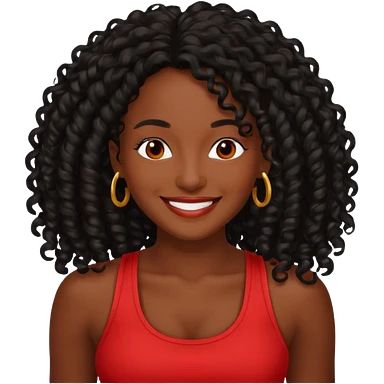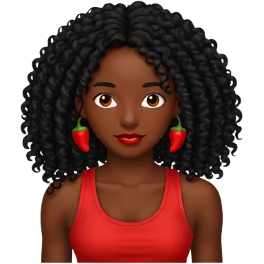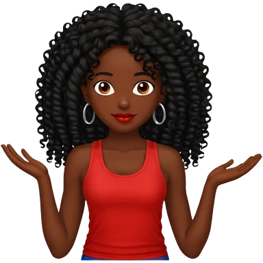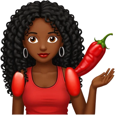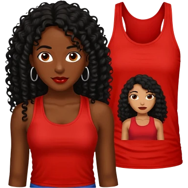 Rozonda Chilli Thomas medium dark skin long black curly hair, red tank top emoji