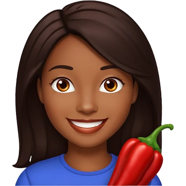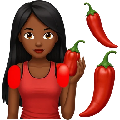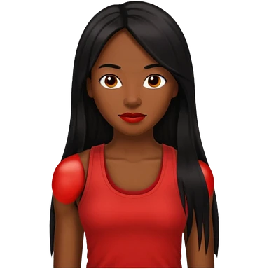 Rozonda Chilli Thomas medium dark skin long black straight hair, red tank top emoji