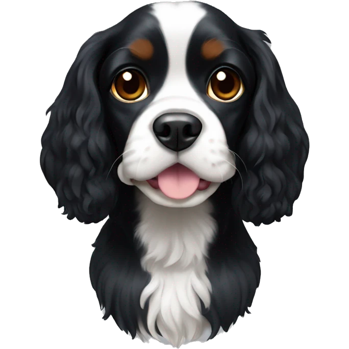 Small completely black cavalier spaniel with white on chest emoji | AI Emoji Generator