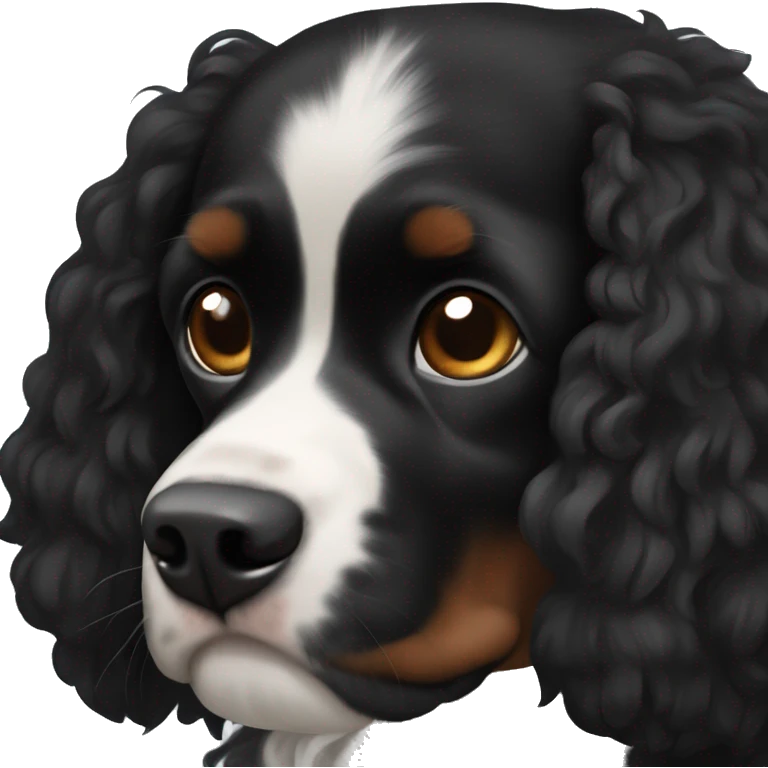 Small completely black king spaniel with black fur on his whole face and white fur on chest emoji | AI Emoji Generator